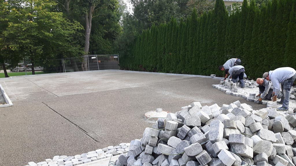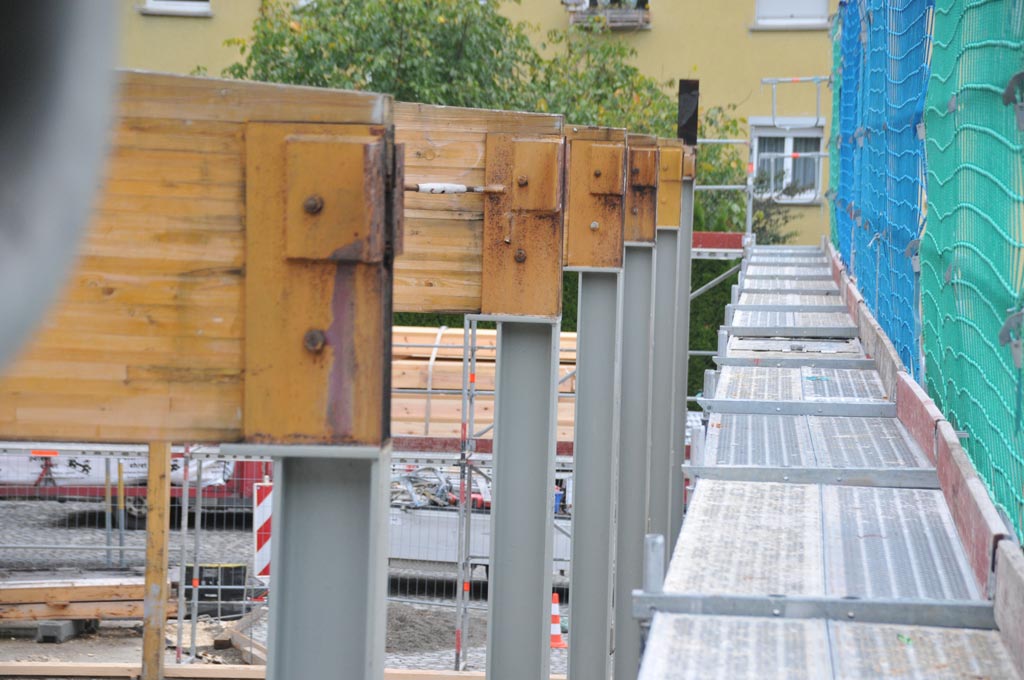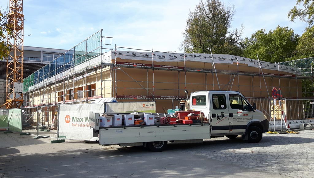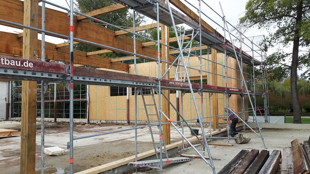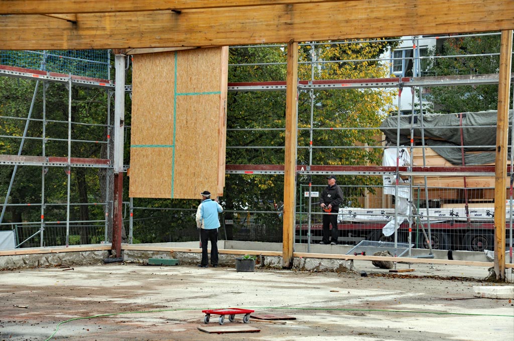 Die Wände zum Park hin werden gesetzt -