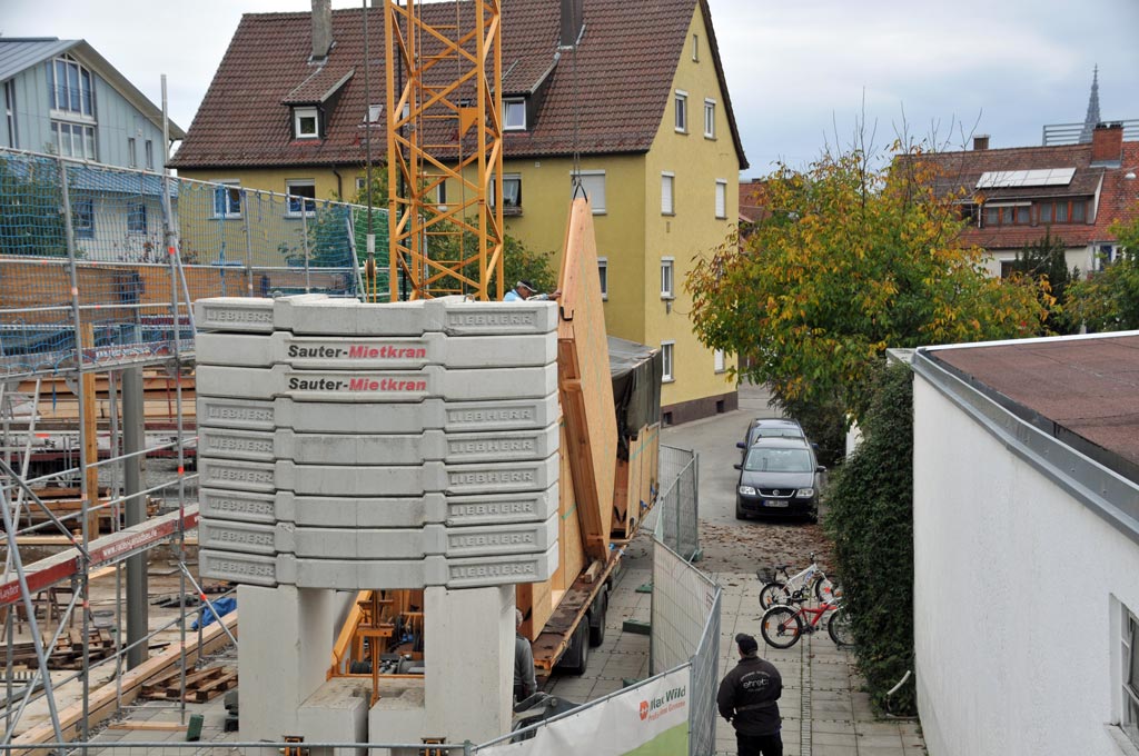 Das erste Wandelement schwebt ein. -