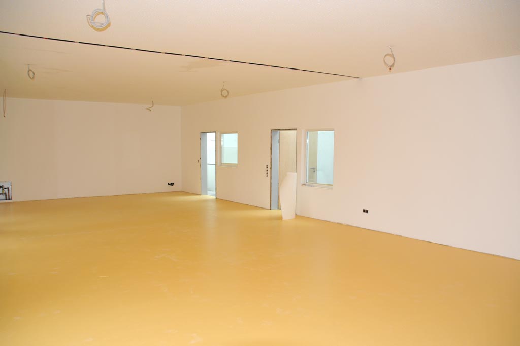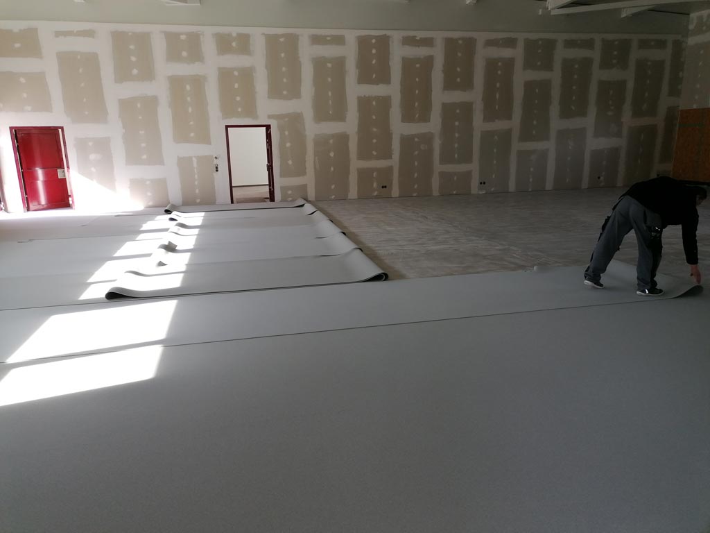 Der Hallenboden wird verlegt. -